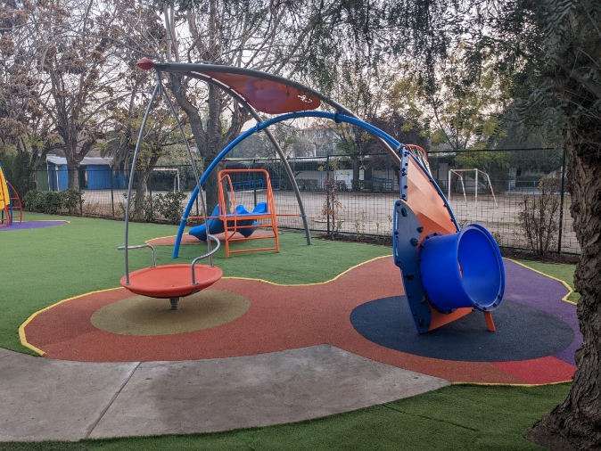 Estamos muy contentos y orgullosos de comunicarles que hemos concretado nuestro proyecto de remodelación del patio de párvulos de la Escuela Especial de Desarrollo de La Reina. Son 460 m2 de pasto sintético, caucho, juegos y jardines diseñado especialmente para los niños y niñas de Prekinder y Kinder con discapacidad mental y espectro autista.